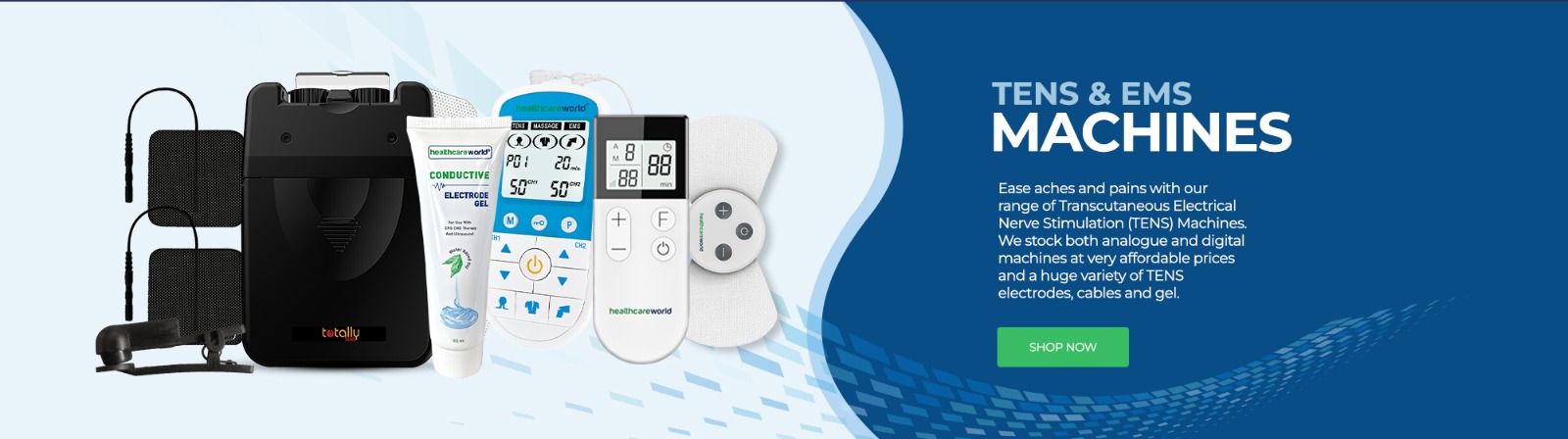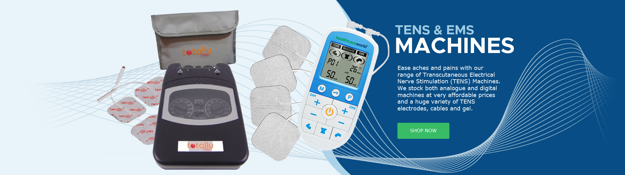 We are a specialist Healthcare Supplier with a particular interest in TENS products such as pain relief machines and TENS accessories including TENS pads and leads. TENS is an abbreviation of Transcutaneous Electrical Nerve Stimulation which uses electrical impulses to treat pain and offers drug free pain relief.